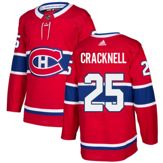 >Men's Adidas Montreal Canadiens #25 Adam Cracknell Authentic Red Home NHL Jersey