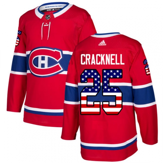 >Men's Adidas Montreal Canadiens #25 Adam Cracknell Authentic Red USA Flag Fashion NHL Jersey