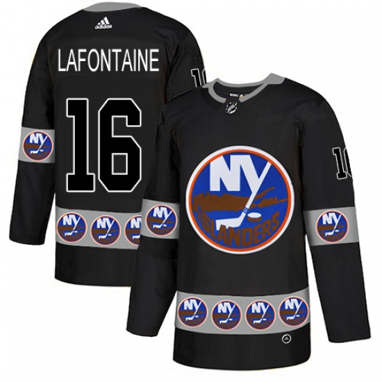 >Men's Adidas New York Islanders #16 Pat LaFontaine Authentic Black Team Logo Fashion NHL Jersey
