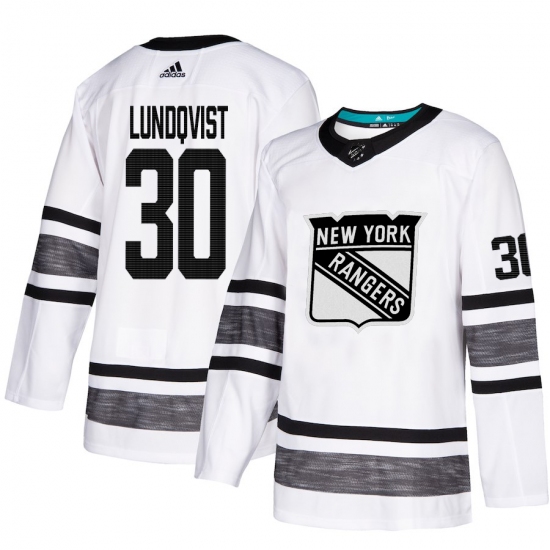 >Men's Adidas New York Rangers #30 Henrik Lundqvist White 2019 All-Star Game Parley Authentic Stitched NHL Jersey