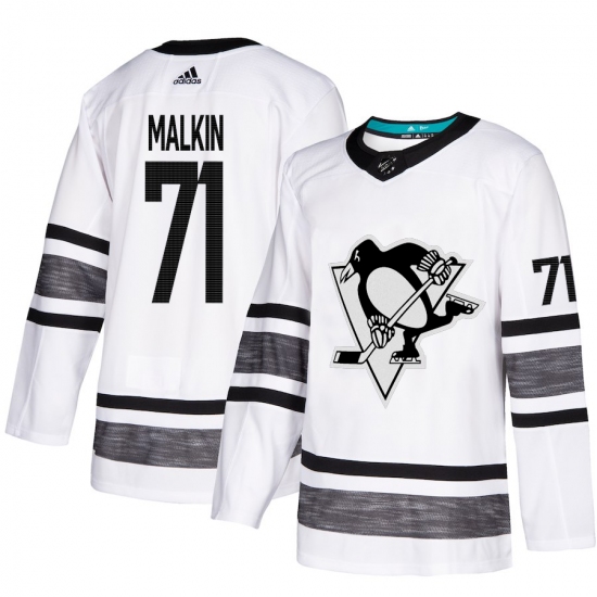 >Men's Adidas Pittsburgh Penguins #71 Evgeni Malkin White 2019 All-Star Game Parley Authentic Stitched NHL Jersey