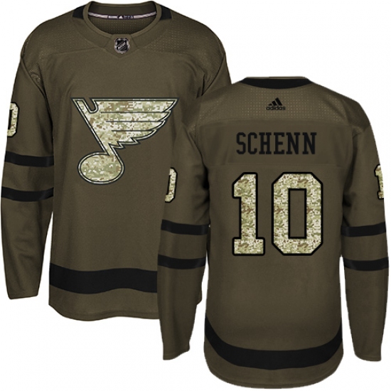 Home>NHL>St. Louis Blues>Brayden Schenn>Men's Adidas St. Louis Blues #10 Brayden Schenn Authentic Green Salute to Service NHL Jersey