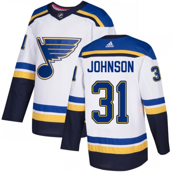 >Men's Adidas St. Louis Blues #31 Chad Johnson Authentic White Away NHL Jersey