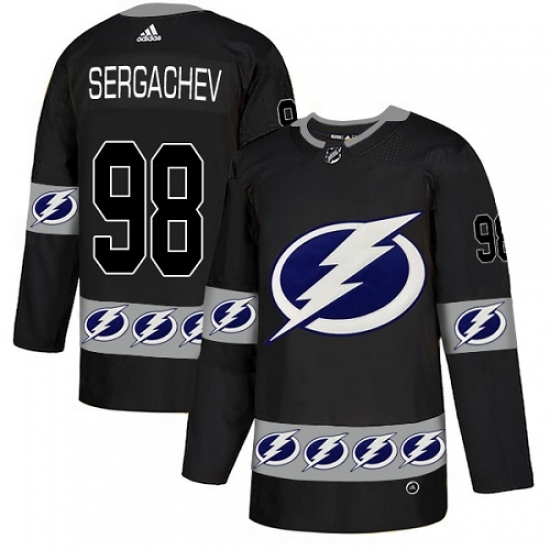 >Men's Adidas Tampa Bay Lightning #98 Mikhail Sergachev Authentic Black Team Logo Fashion NHL Jersey
