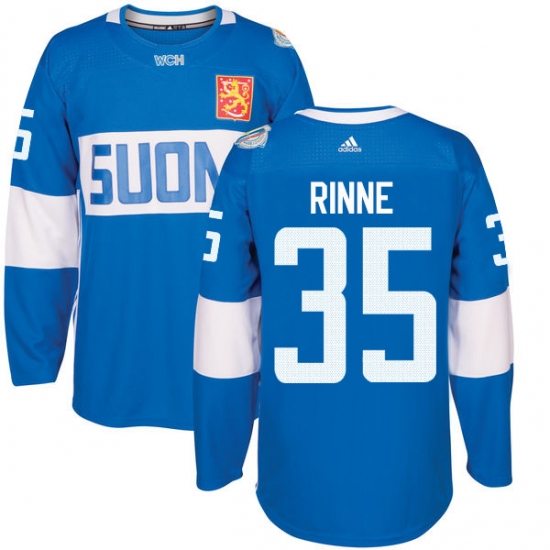 Men's Adidas Team Finland #35 Pekka Rinne Authentic Blue Away 2016 World Cup of Hockey Jersey