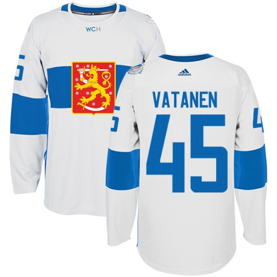 Men's Adidas Team Finland #45 Sami Vatanen Authentic White Home 2016 World Cup of Hockey Jersey