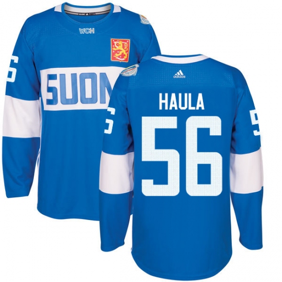 Men's Adidas Team Finland #56 Erik Haula Premier Blue Away 2016 World Cup of Hockey Jersey
