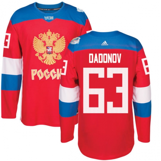 Home>NHL>Team Russia>Evgenii Dadonov>Men's Adidas Team Russia #63 Evgenii Dadonov Premier Red Away 2016 World Cup of Hockey Jersey