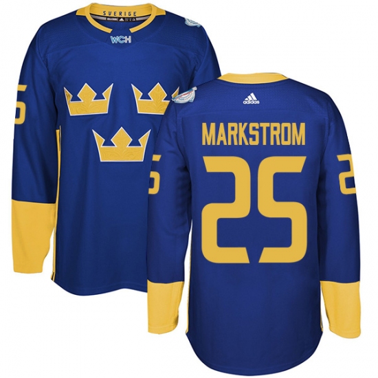 Home>NHL>Team Sweden>Jacob Markstrom>Men's Adidas Team Sweden #25 Jacob Markstrom Premier Royal Blue Away 2016 World Cup of Hockey Jersey