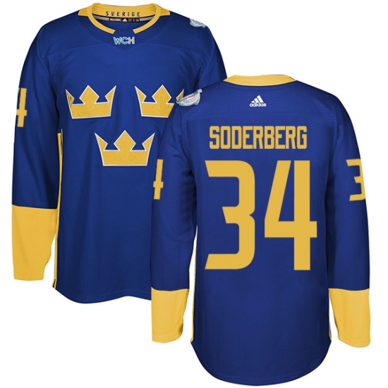 Home>NHL>Team Sweden>Carl Soderberg>Men's Adidas Team Sweden #34 Carl Soderberg Authentic Royal Blue Away 2016 World Cup of Hockey Jersey