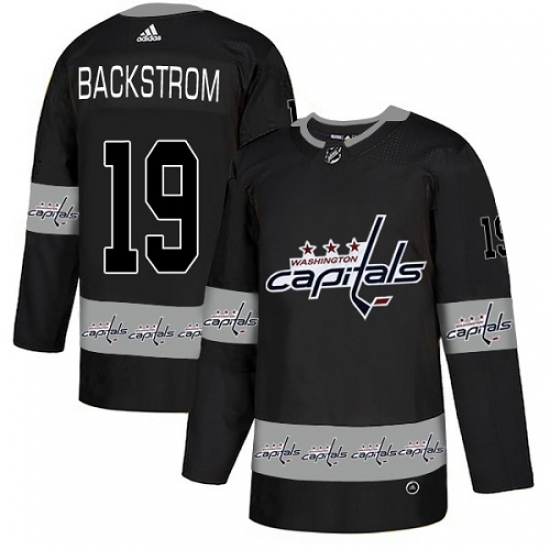 >Men's Adidas Washington Capitals #19 Nicklas Backstrom Authentic Black Team Logo Fashion NHL Jersey