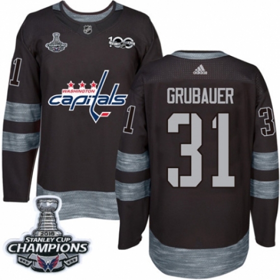 Men's Adidas Washington Capitals #31 Philipp Grubauer Authentic Black 1917-2017 100th Anniversary 2018 Stanley Cup Final Champions NHL Jersey