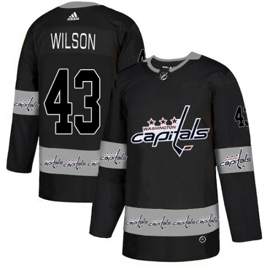 Men's Adidas Washington Capitals #43 Tom Wilson Authentic Black Team Logo Fashion NHL Jersey