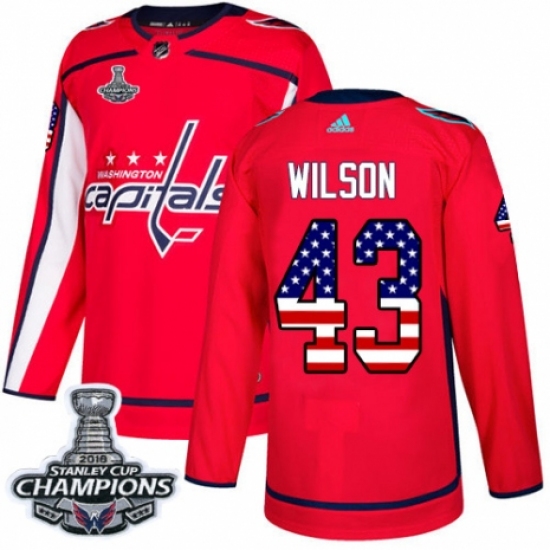 Men's Adidas Washington Capitals #43 Tom Wilson Authentic Red USA Flag Fashion 2018 Stanley Cup Final Champions NHL Jersey