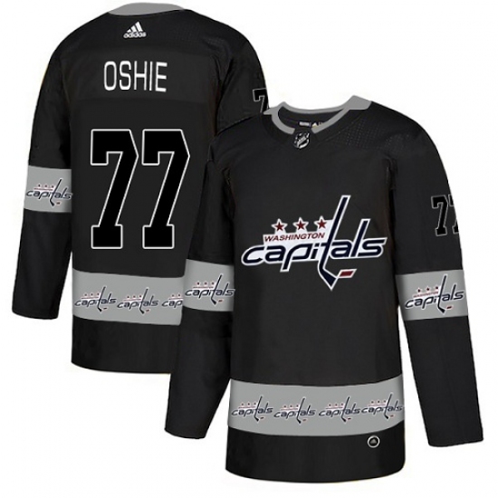Men's Adidas Washington Capitals #77 T.J. Oshie Authentic Black Team Logo Fashion NHL Jersey