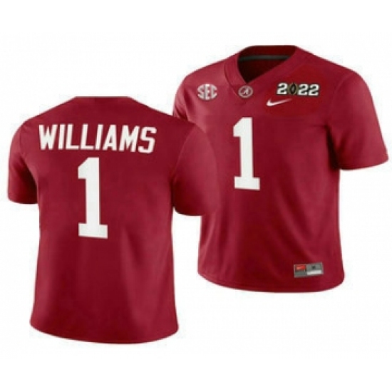 Men's Alabama Crimson Tide #1 Jameson Williams 2022 Patch Red College Football Stitched Jersey