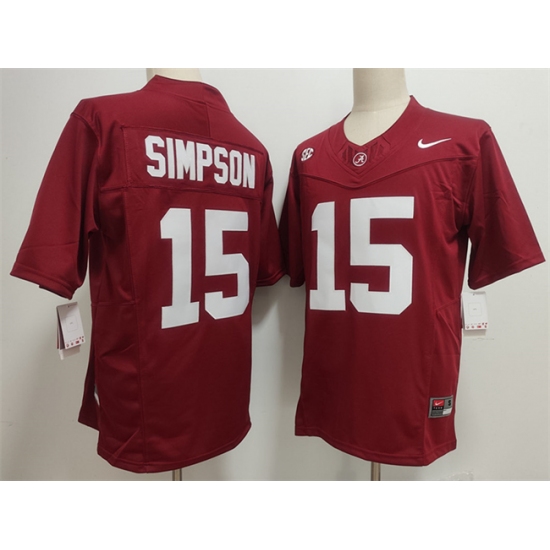 >Men's Alabama Crimson Tide #15 Ty Simpson Red F.U.S.E. Stitched Football Jersey