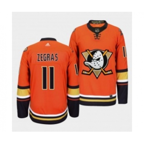 >Men's Anaheim Ducks #11 Trevor Zegras Orange Authentic Adidas Jersey