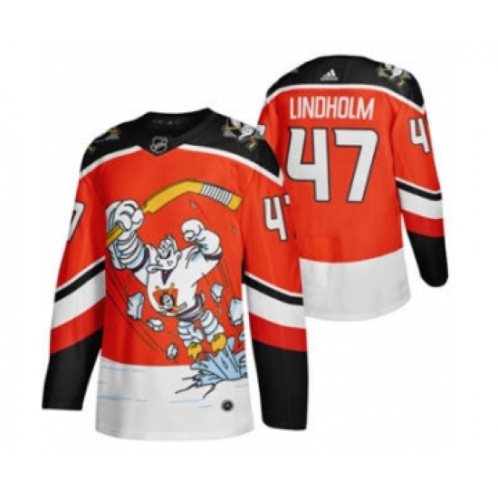 >Men's Anaheim Ducks #47 Hampus Lindholm Red 2020-21 Reverse Retro Alternate Hockey Jersey