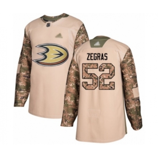 >Men's Anaheim Ducks #52 Trevor Zegras Authentic Camo Veterans Day Practice Hockey Jersey