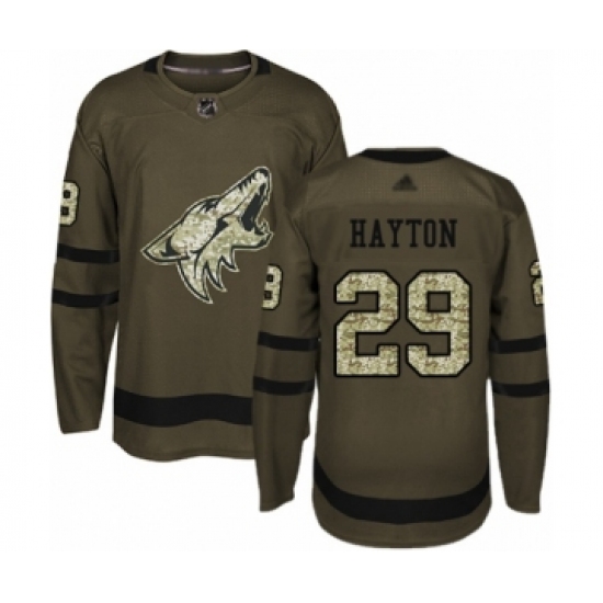 Men's Arizona Coyotes #29 Barrett Hayton Authentic Green Salute to Service Hockey Jersey