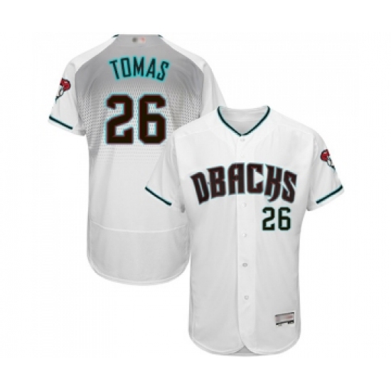 >Men's Arizona Diamondbacks #26 Yasmany Tomas White Teal Alternate Authentic Collection Flex Base Baseball Jersey