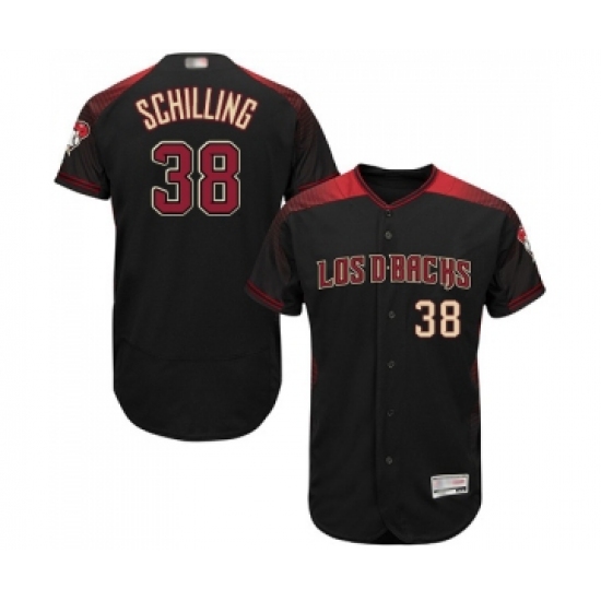 >Men's Arizona Diamondbacks #38 Curt Schilling Black Alternate Authentic Collection Flex Base Baseball Jersey