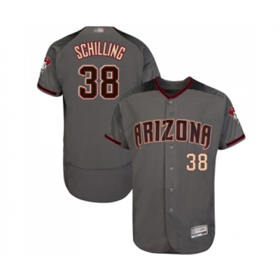>Men's Arizona Diamondbacks #38 Curt Schilling Grey Road Authentic Collection Flex Base Baseball Jersey