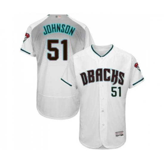 >Men's Arizona Diamondbacks #51 Randy Johnson White Teal Alternate Authentic Collection Flex Base Baseball Jersey