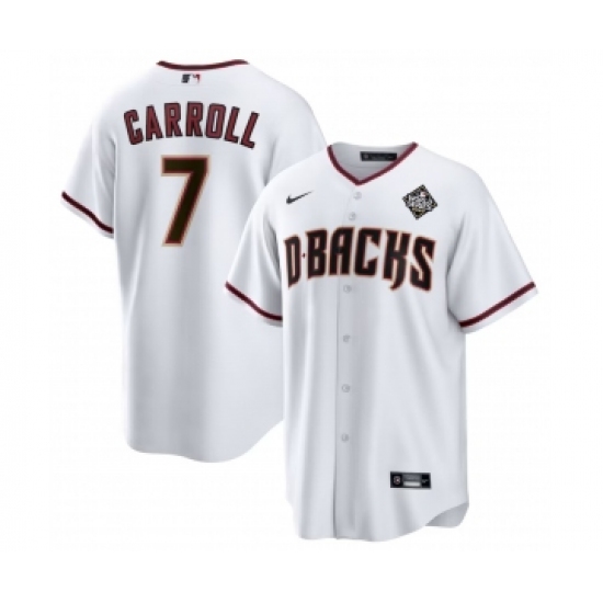 Men's Arizona Diamondbacks #7 Corbin Carroll White 2023 World Series Cool Base Stitched Baseball Jersey