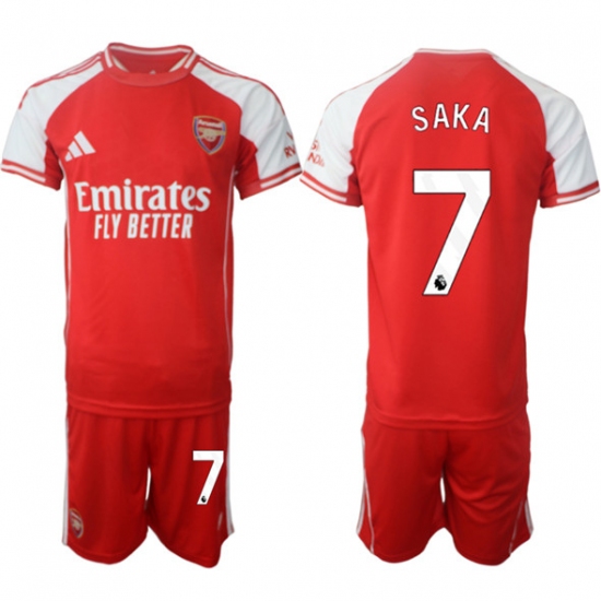>Men's Arsenal F.C #7 Bukayo Saka Red 2025 Home Soccer Jersey Suit