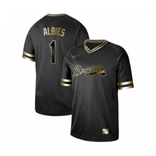 >Men's Atlanta Braves #1 Ozzie Albies Authentic Black Gold Fashion Baseball Jersey