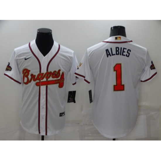 Men's Atlanta Braves #1 Ozzie Albies Nike White Authentic Golden Edition Jersey