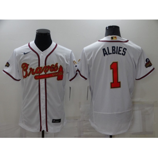 Men's Atlanta Braves #1 Ozzie Albies White 2022 Gold Program Authentic Player Jersey