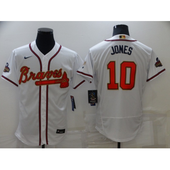 Men's Atlanta Braves #10 Chipper Jones Nike White 2022 Gold Program Authentic Player Jersey