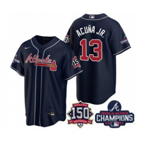 Men's Atlanta Braves #13 Ronald Acuna Jr. 2021 Navy World Series Champions With 150th Anniversary Patch Cool Base Stitched Jersey