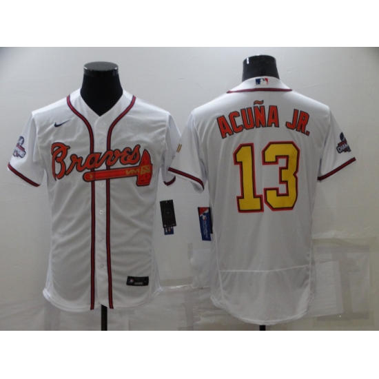 Men's Atlanta Braves #13 Ronald Acuna Jr. 2021 White Gold World Series Champions Jersey