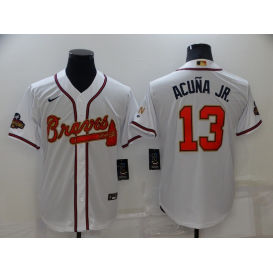 Men's Atlanta Braves #13 Ronald Acuna Jr. Nike White 2022 Gold Program Authentic Player Jersey