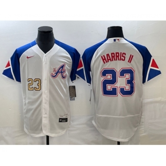 >Men's Atlanta Braves #23 Michael Harris II Number White 2023 City Connect Flex Base Stitched Baseball Jersey2