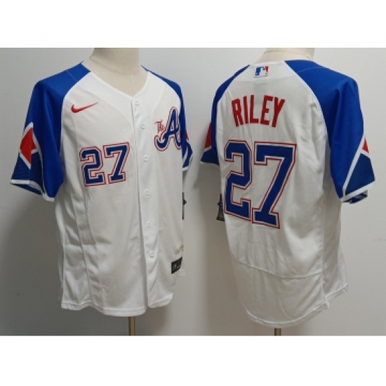 Men's Atlanta Braves #27 Austin Riley White 2023 City Connect Flex Base Stitched Baseball Jersey