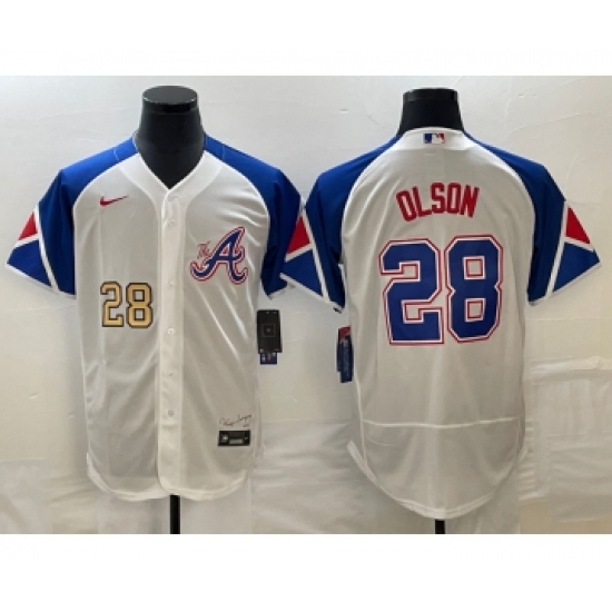 Men's Atlanta Braves #28 Matt Olson White 2023 City Connect Flex Base Stitched Jersey