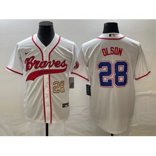 Men's Atlanta Braves #28 Matt Olson White Cool Base Stitched Baseball Jersey