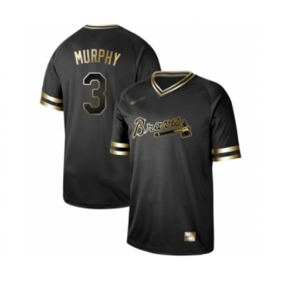 >Men's Atlanta Braves #3 Dale Murphy Authentic Black Gold Fashion Baseball Jersey