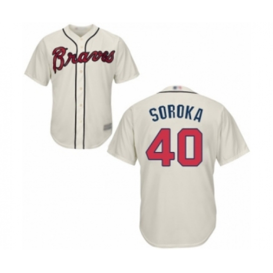 Men's Atlanta Braves #40 Mike Soroka Replica Cream Alternate 2 Cool Base Baseball Jersey