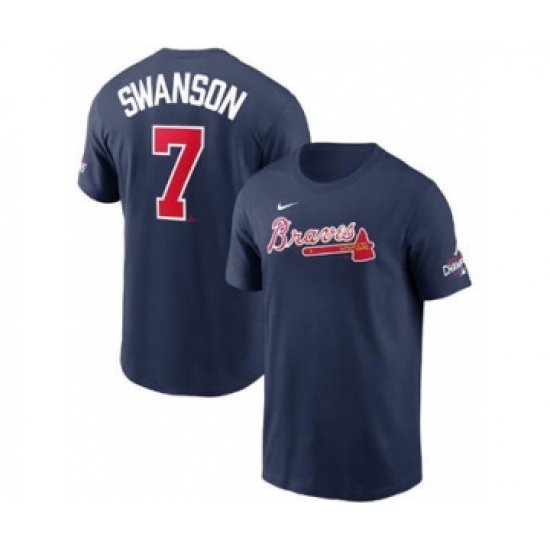 Men's Atlanta Braves #7 Dansby Swanson 2021 Navy World Series Champions Player Name & Number T-Shirt