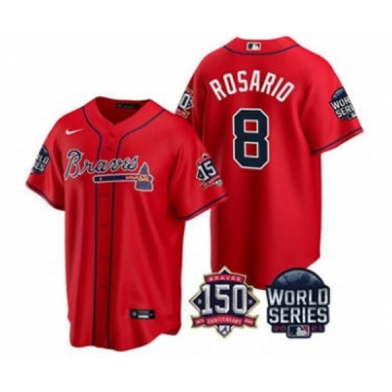 Men's Atlanta Braves #8 Eddie Rosario 2021 Red World Series With 150th Anniversary Patch Cool Base Stitched Jersey