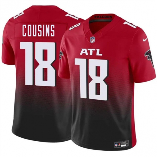 >Men's Atlanta Falcons #18 Kirk Cousins Red Black 2023 F.U.S.E. Vapor Untouchable Limited Football Stitched Jersey
