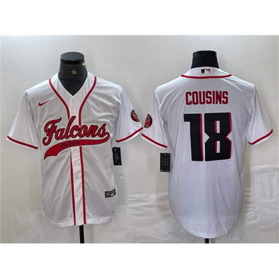 >Men's Atlanta Falcons #18 Kirk Cousins White With Cool Base Baseball Stitched Jersey