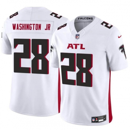 >Men's Atlanta Falcons #28 Carlos Washington Jr White 2024 F.U.S.E Vapor Untouchable Limited Football Stitched Jersey