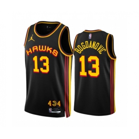 Men's Atlanta Hawks #13 Bogdan Bogdanovic 2022-23 Black Statement Edition Stitched Jersey